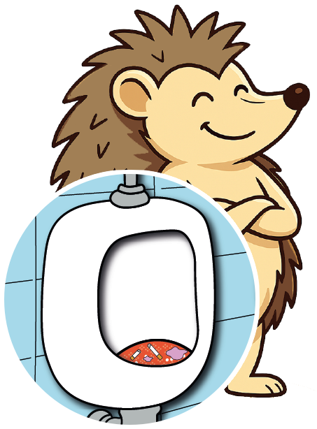 Toilet Hedgehog catches what used to end up down the drain: cigarette butts, chewing gum, trash – everything stays out! No more expensive clogged drains, no more hassle.