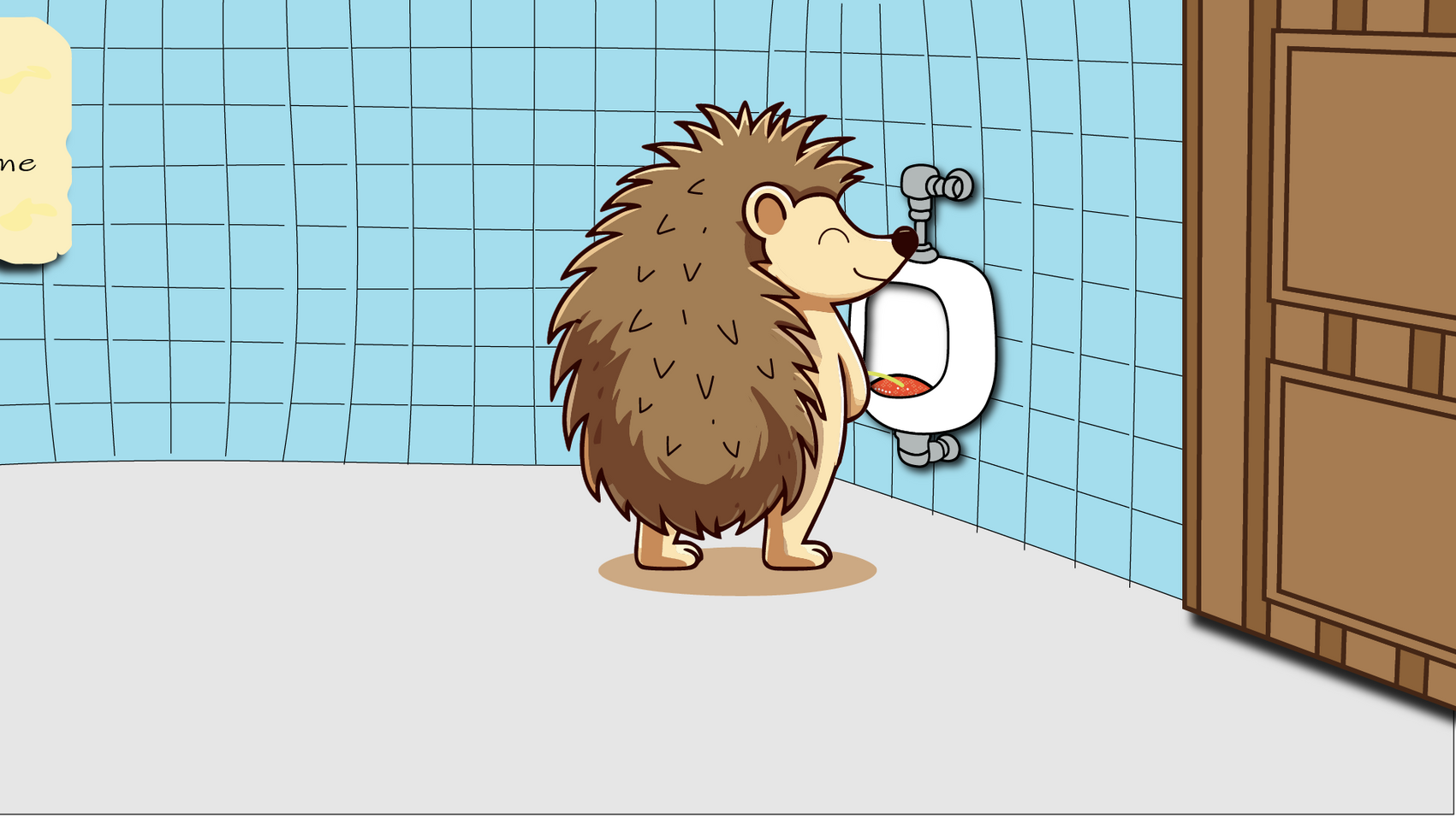 Giuseppe just wants to pee in peace – but without a urinal screen, everything splashes back! The toilet turns into a battlefield, the floor into a slip 'n slide, and poor Giuseppe? Completely defeated. This can’t go on!